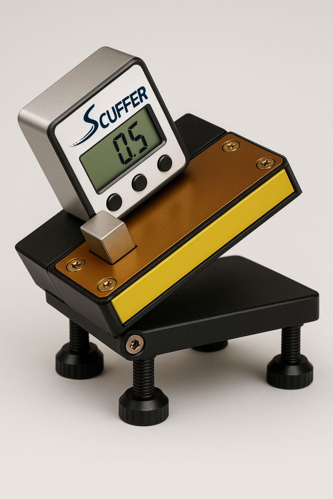 SCUFFER is a simple, cost-effective, table top device, that measures the static coefficient of friction between 2 different materials or coatings using coupons.